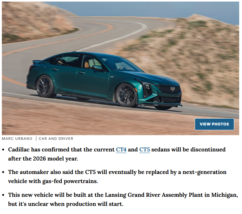 CT5则将在同年底前终止生产,同时品牌将推进CT5的重新设计工作,新一代车型将继续搭载燃油发动机。新一代CT5将在密歇根州兰辛大河工厂生产,率先登陆美加市场,最快2027年亮相。
