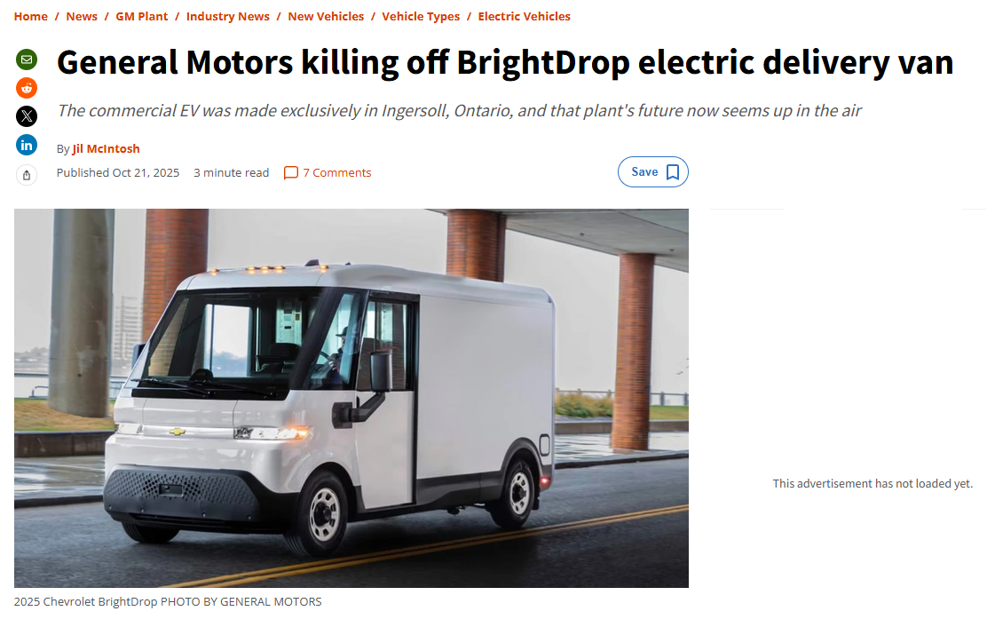 通用汽车在10月21日发布第三季度财报时同步宣布该决定,称商用电动送货车市场的发展速度远低于预期,叠加监管环境变化及美国取消相关税收抵免政策,最终促成了这一“产能调整”举措。