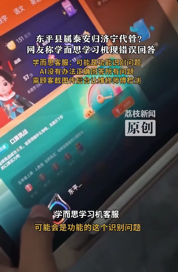 此外,常识性问题回答更是频频“翻车”,如在此前荔枝新闻的报道中,有消费者发现,将“东平县属泰安市直接管辖”错误答为“由济宁市代管”等等。