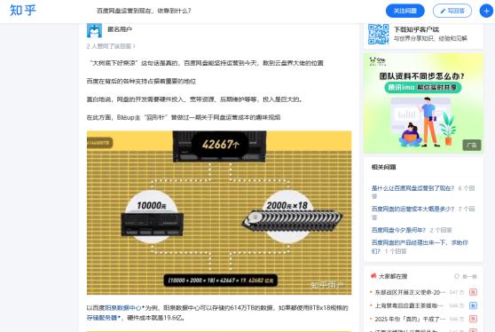 在这场“百盘大战”中,百度凭借雄厚的资金支持坚持下来,而其他竞争者则因无法承受高昂的服务器和带宽成本而退出市场,以至于此后,在谈及百度网盘能够拿下这场大战的胜利时,时任百度网盘负责人曾对媒体表示,要感谢“Robin(李彦宏)坚持下来,不会因为成本压力就轻易关掉”。根据知乎相关内容的爆料及分析,仅百度阳泉数据中心的硬件成本就超过20亿元,每年电费约2.5亿元,带宽成本超过4亿元,其成本之高可想而知。