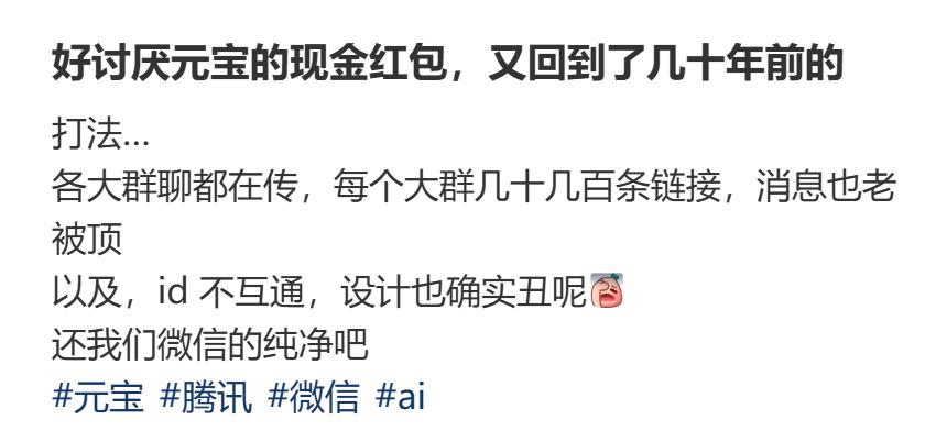 然而,与活动营造的热闹景象形成鲜明对比的是,社交平台上出现了大量针对元宝App吐槽的声音: